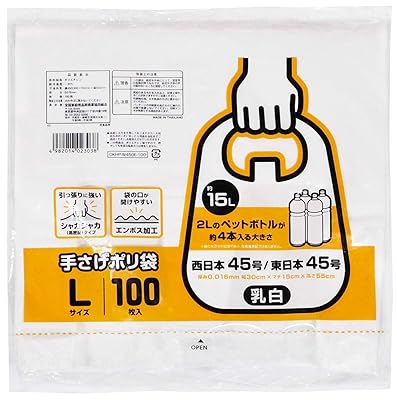 【Amazon】15ℓ:手さげ ポリ袋 100枚 Lサイズ 約15L 縦55cm×幅30cm×マチ15cm 袋の口が開けやすい エンボス加工 引っ張りに強い ごみ袋 レジ袋 OKHP-W450E-100