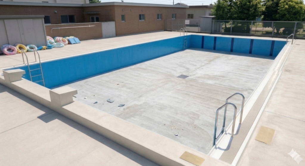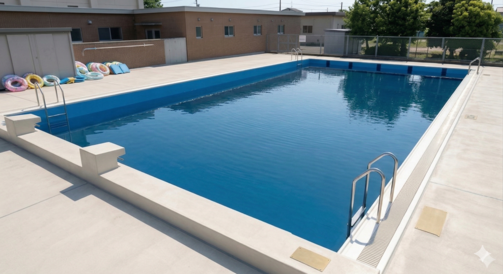 • 寸法: 25m×12.5m×1.2m(平均水深)= 375㎥