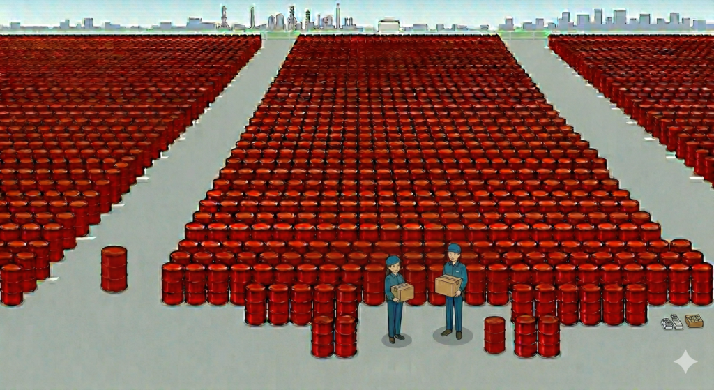 毎日、1,420本ものドラム缶に入った燃料が、再配達のためだけに消えていく計算になります。