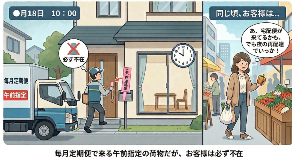 そのためお客様は「ネットで購入するとき、同時に日時指定をする」などの【再配達の予防になる手続き】ができない場合が多いんですね。