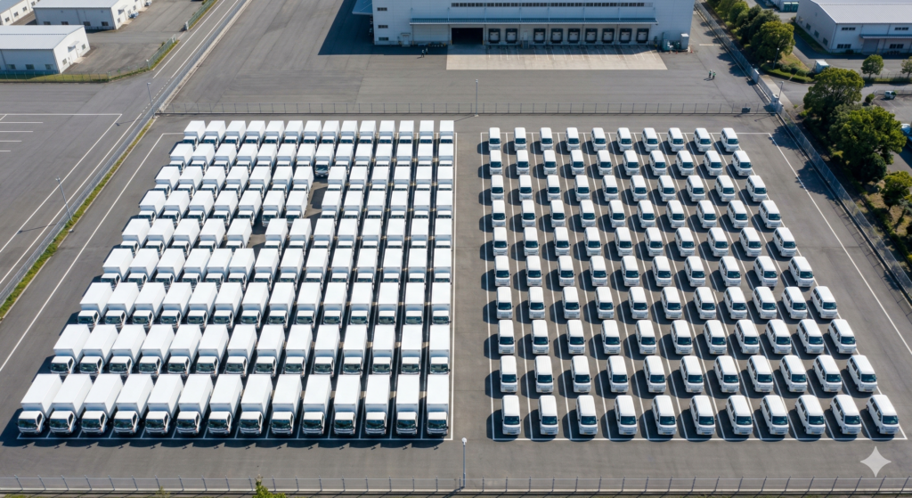 軽油で走るトラックとガソリンで走る軽ワゴンなどが主力だと思いますが、ディーゼル車:ガソリン車の比率が今はわからないので、仮に1:1として試算しています。