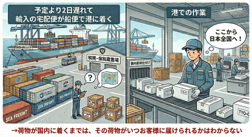 また『T●mu』などの輸入の荷物は多くが船便で来るということなんですが、船の発着が遅れたりすることもあり、国内に入って来るのが【いつなのか?】が前もってわかりません